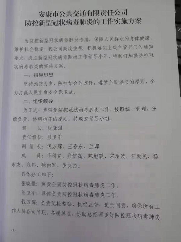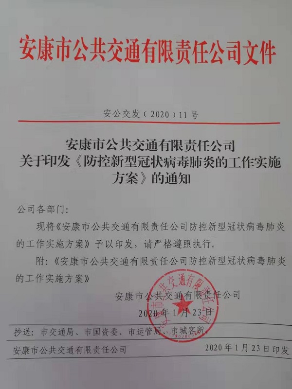 在節(jié)日前夕,公司召開疫情防控工作緊急部署會(huì),成立新型冠狀病毒肺炎防控工作領(lǐng)導(dǎo)小組,部署防控疫情工作,要求各部門要本著“嚴(yán)密防控疫情、確保春運(yùn)安全”的工作思路,全力以赴做好防控工作,發(fā)現(xiàn)問題第一時(shí)間上報(bào),保證公交乘車環(huán)境安全。