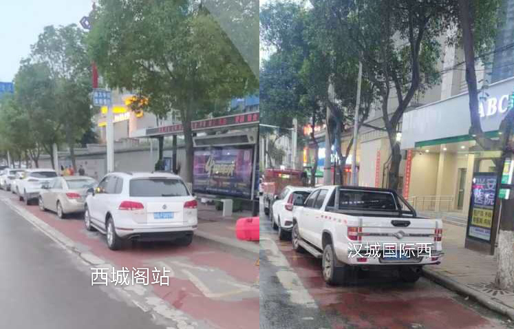 在金州廣場南站,十幾輛私家車“整齊劃一”的停在公交車站位置,地面紅色區(qū)域上的公交兩字也被完全覆蓋,從遠(yuǎn)處望去,站牌旁坐著幾個人正等待公交車的到來。在興華名城站,一輛私家車??吭诠卉囌厩埃倎淼墓卉嚐o法按其規(guī)定進(jìn)站停車。在西城閣站和漢城國際西站,幾輛私家車甚是“任性”,儼然將公交車站當(dāng)成了“停車場”,筆者在此駐足十幾分鐘,它們依然“紋絲不動”,有的車上甚至沒有車主。