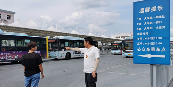 “你就在這等1路車,直達(dá)城東客運(yùn)站,不用再走到進(jìn)站路哪兒等車了?!?月11日,在安康火車站公交首末站,市公交公司一車隊(duì)副隊(duì)長(zhǎng)寇邦正告知乘客如何趕往目的地。